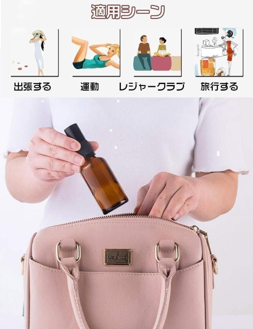 アルコール消毒液の携帯用に利用。水、アロマオイル、香水、その他旅行の必需品などの製品に適しています。
